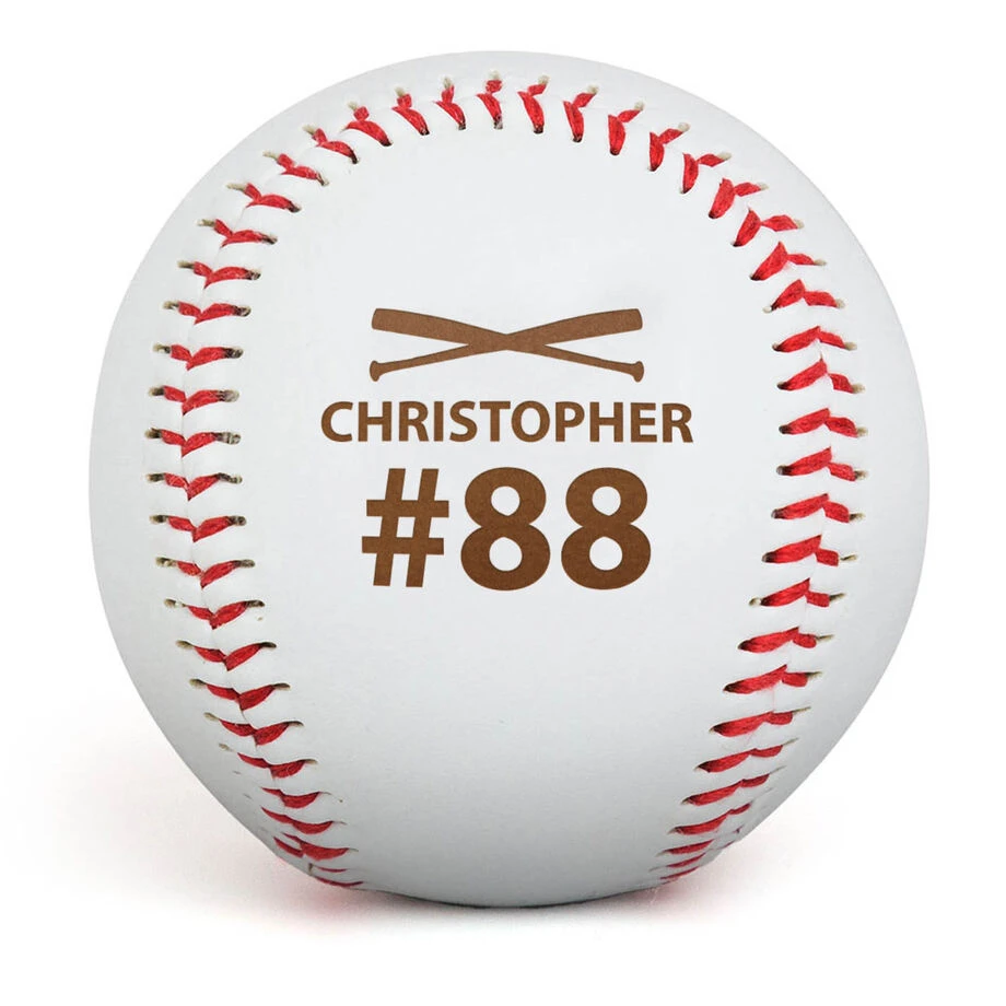 This engraved baseball is the perfect personalized gift for any baseball player. Featuring a crossed bats design, it can be customized with a player’s name and number. Whether for a special occasion or as a token of appreciation, this engraved baseball is sure to be a cherished keepsake for any baseball enthusiast. Makes for a great team gift idea for end-of-season banquets.