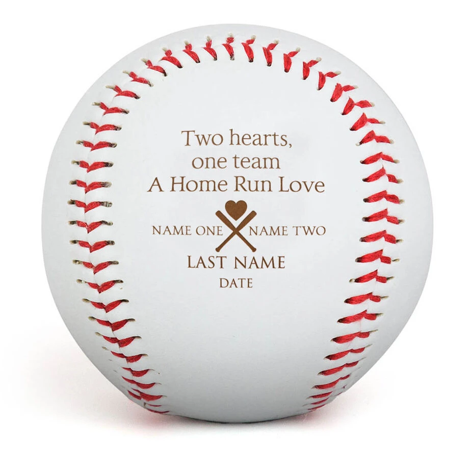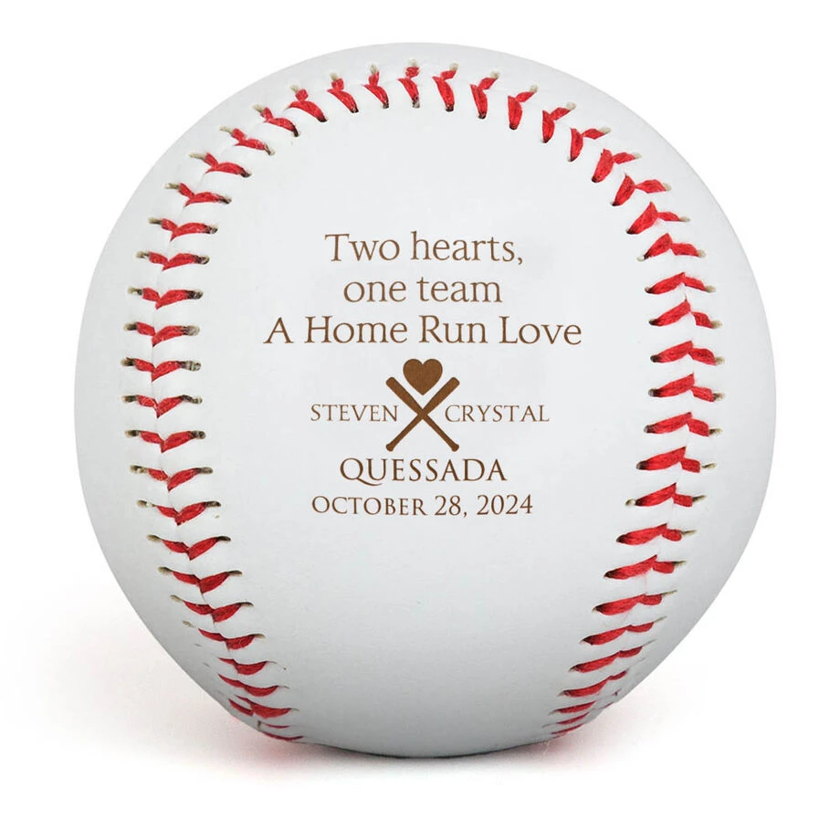 This engraved baseball is memorable way to thank friends and family for supporting your big day. It features a crossed bats with heart design and heartfelt saying. Customize with the names and wedding date of the happy couple! Perfect for a baseball-loving couple to share their passion for the sport. Why settle for a traditional wedding guest gift when you can give something truly unique and special.
