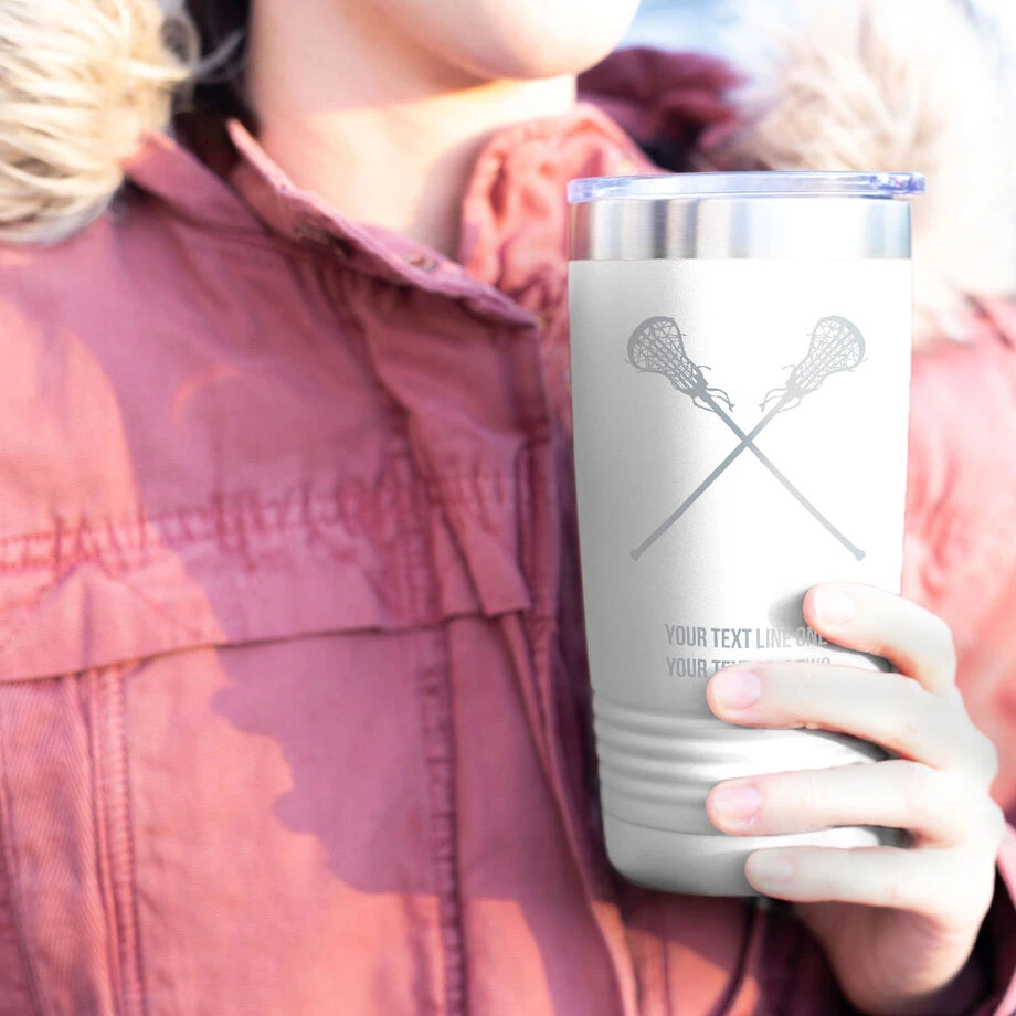 Our laser engraved stainless steel girls lacrosse travel tumbler has a crossed stick icon for an eye-catching, stylish tumbler ideal for hot and cold drinks. The 20 oz. tumbler is the perfect size for road trips or games – or anywhere you’re headed – and utilizes double-wall vacuum insulation to ensure both hot and cold drinks stay as close as possible to their ideal temperatures for as long as possible. All year round, lacrosse players, coaches, and parents will love this stylish and sophisticated lacrosse travel tumbler that’s a great gift for any occasion.