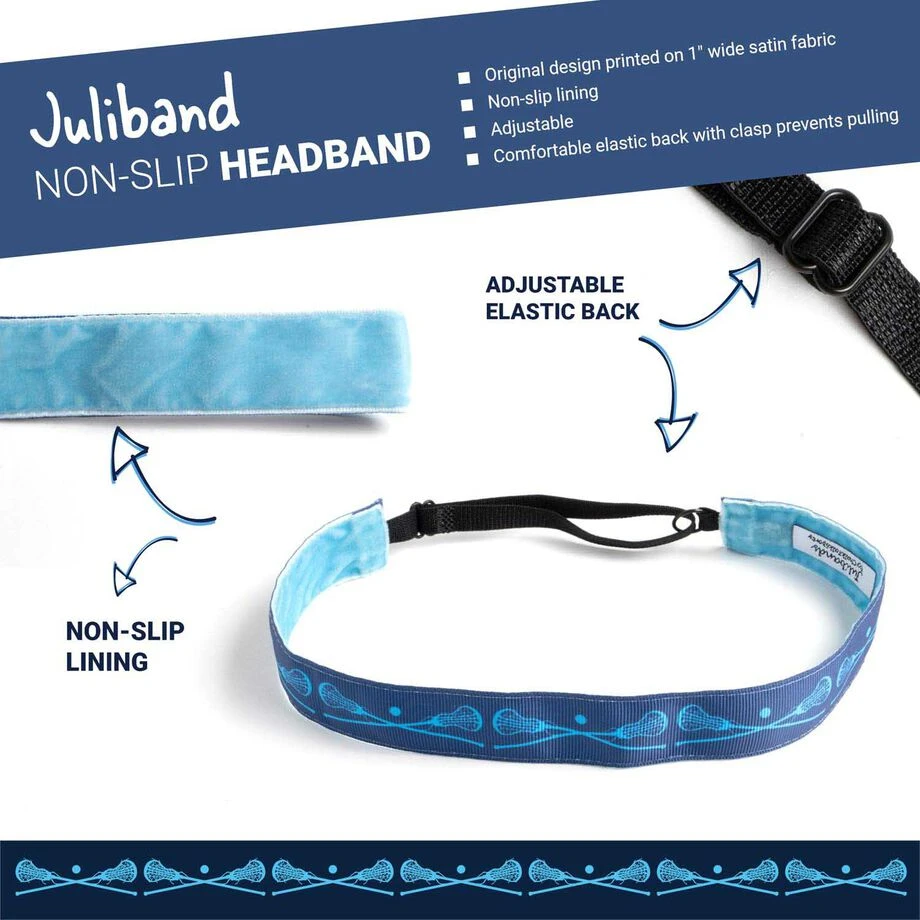 Our athletic headband features a unique lacrosse sticks design. The comfortable Juliband headband is backed with a non-slip velvet to ensure your hair stays put through any activity. This headband is fully adjustable for the best custom fit. Our stylish and unique headband is perfect for any practice, game, or even everyday wear. This headband is an ideal accessory for every lacrosse player, or any other sport enthusiast.