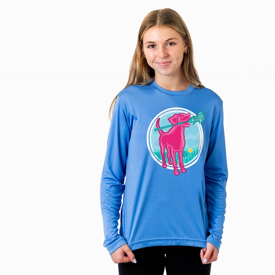 Girls Lacrosse Long Sleeve Performance Tee – Lacrosse Dog With Girl Stick