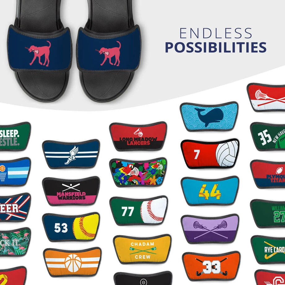 Show off that lacrosse pride everywhere you go with a pair of lacrosse Repwell® slide sandals and the interchangeable design straps. With the removable design straps you can mix and match different straps and represent different sports and designs all on one pair of sandals. With the endless possibilities for designs these Repwell® slide sandals and straps make for a great gift not just for a player but for the whole team.