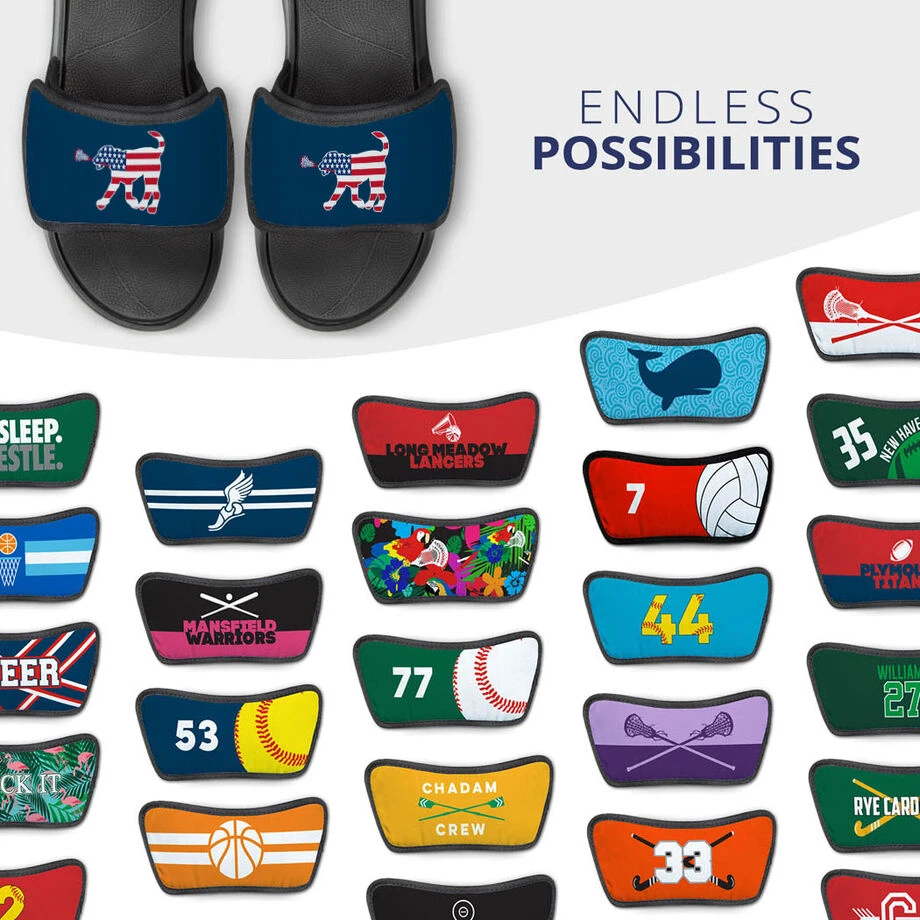 Show off that lacrosse pride everywhere you go with a pair of lacrosse Repwell® slide sandals and the interchangeable design straps. With the removable design straps you can mix and match different straps and represent different sports and designs all on one pair of sandals. With the endless possibilities for designs these Repwell® slide sandals and straps make for a great gift not just for a player but for the whole team.