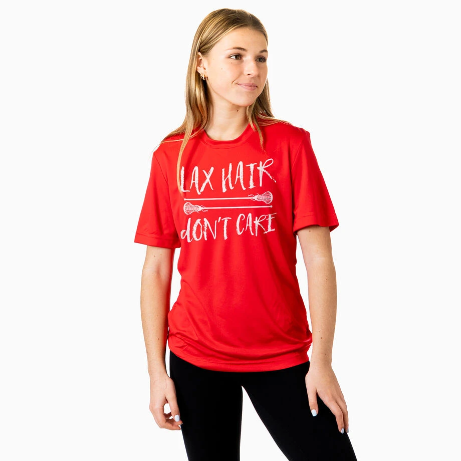 Girls Lacrosse Short Sleeve Performance Tee – Lax Hair Don’t Care