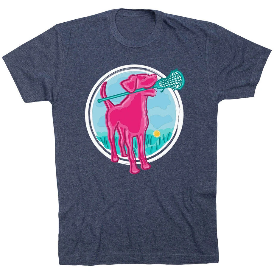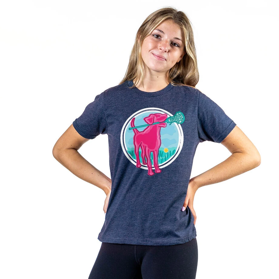 Girls Lacrosse Short Sleeve T-Shirt – Lacrosse Dog With Girl Stick