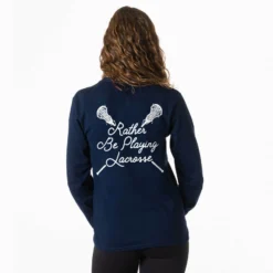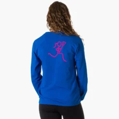 Girls Lacrosse Tshirt Long Sleeve – Watercolor Lacrosse Dog With Girl Stick (Back Design)