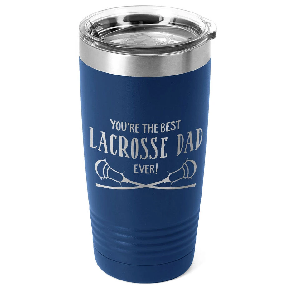 Show your dad how much you appreciate all that he does with this unique lacrosse dad travel mug, this mug is sure to a favorite for coffee on the go. Our 20 oz. hot/cold insulated tumbler is the perfect choice for coffee – or any beverage – and keeps them near optimal temperatures for as long as possible. Utilizing double-wall vacuum insulation, the tumbler ensures hot drinks stay hot and cold drinks stay cold for as long as possible. Laser engraved with a bold design, this tumbler is great gift for that special someone that is sure to be put to good use almost every day.