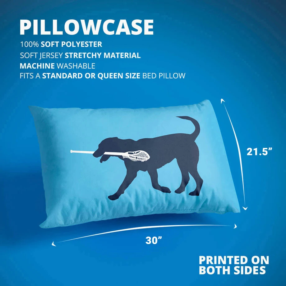 Max the Lax Dog is part of our Dog Squad and is super happy to be featured on this stylish lacrosse pillowcase that’s an awesome gift for any player. Soft and comfortable, the pillowcase fits most standard sized pillows and is the perfect choice to add some lacrosse spirit and style to a player’s bedroom. An excellent lacrosse gift for the end of the season, birthdays, graduations, holidays, or other occasions.