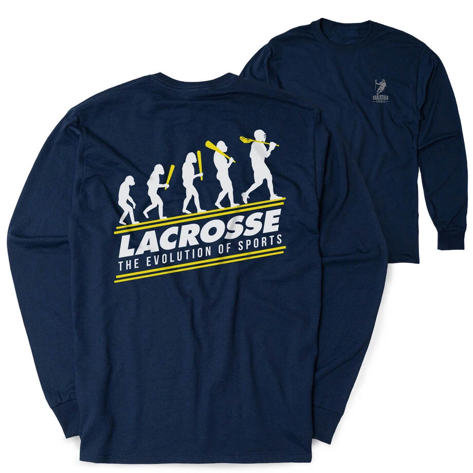 Show off your love for guys lacrosse with our exclusive Back Design Long Sleeve Shirts. These stylish shirts feature our exclusive “Evolution of Lacrosse” design on the back, allowing you to express your passion for the sport in a fashionable way. Meticulously crafted with sharp attention to detail, each shirt boasts a guys lacrosse design that is sure to turn heads. Whether you’re a dedicated fan, an avid player, or simply admire the spirit of guys lacrosse, this shirt is the perfect choice to make a bold statement wherever you go. Available in a variety of colors and unique designs, these shirts are a must-have for any athlete’s wardrobe.