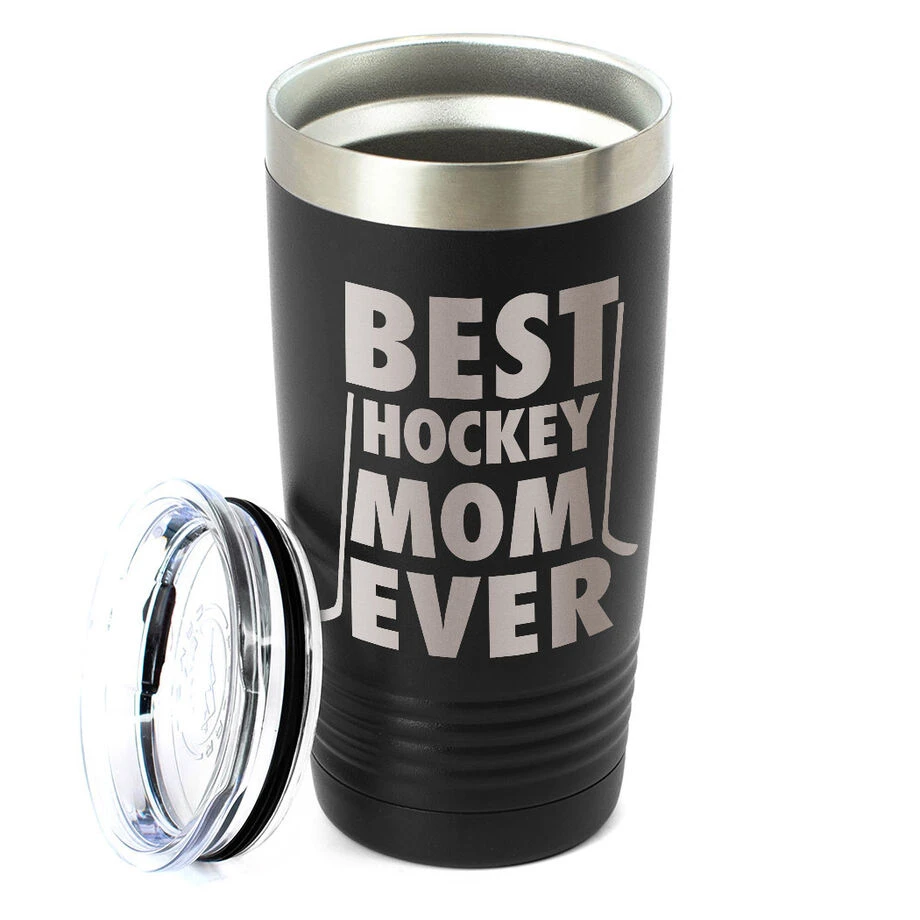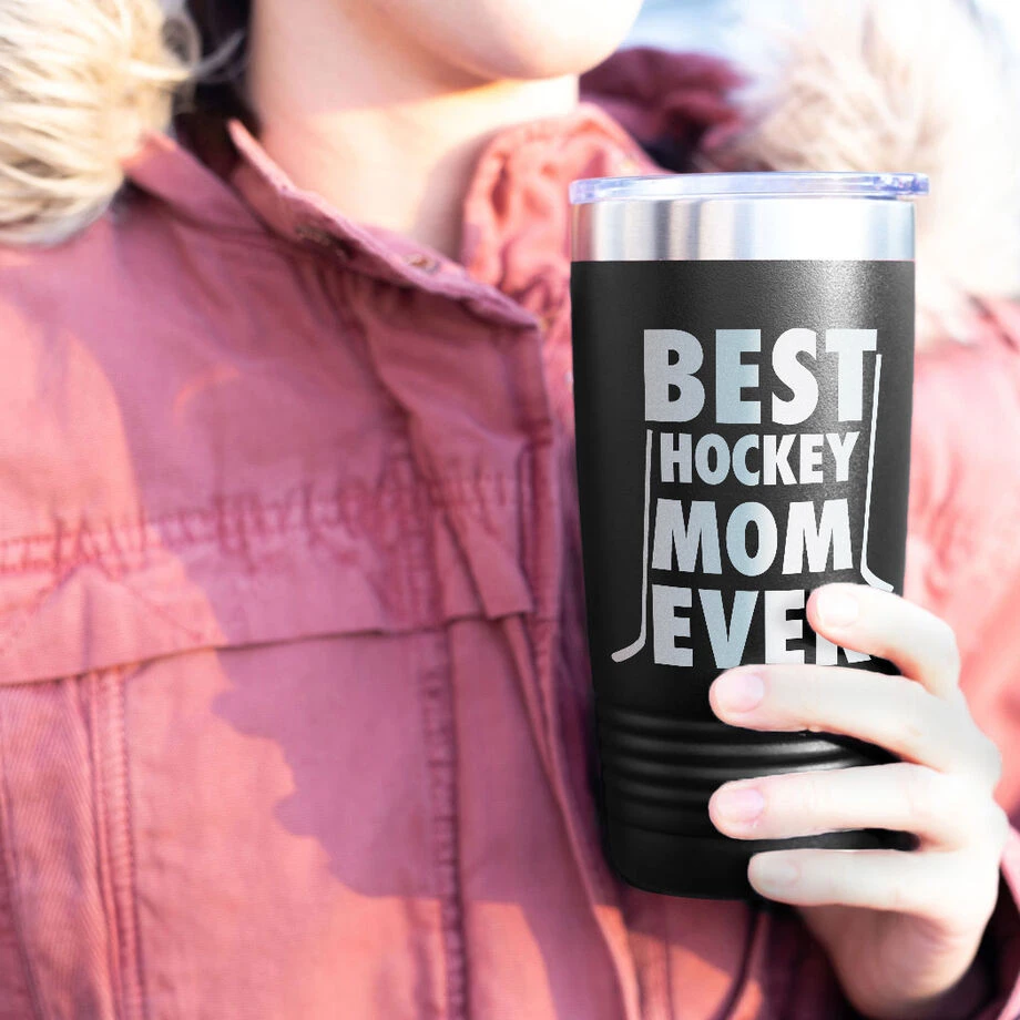 Your hockey mom will love our engraved “best hockey mom ever” stainless steel travel tumbler for both hot and cold drinks and a great hockey mom gift idea. The durable 20 oz. tumbler is designed to ensure hot drinks stay hot and cold drinks stay cold for as long as possible, and utilizes double-wall vacuum insulation to help ensure he drinks stay at, or near, optimal temperatures, to be enjoyed as intended when away from home. Perfect for drinking to and from work, as well as using while there, bringing to games, or taking along anywhere a busy hockey mom is headed. Surprise her with this great hockey mom gift that’s ideal for Mother’s Day and other holidays, at the end of the season, or for any occasion.