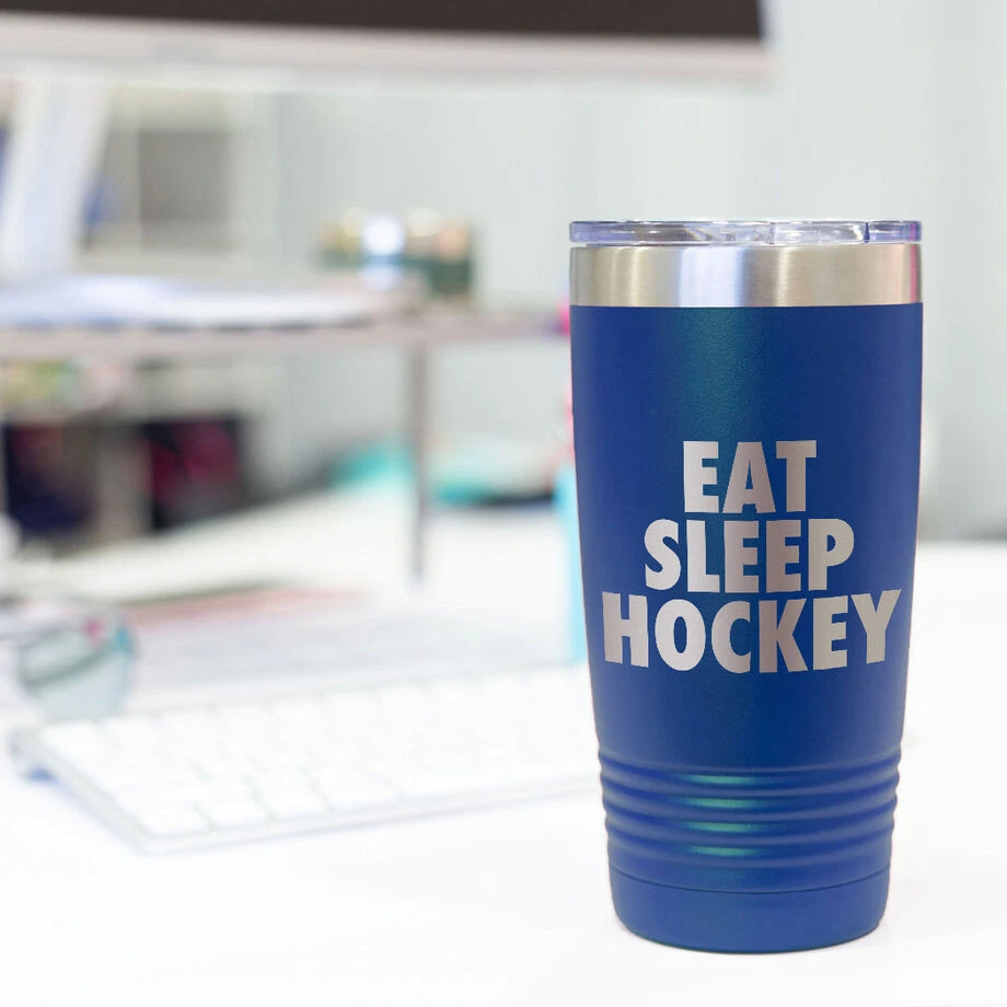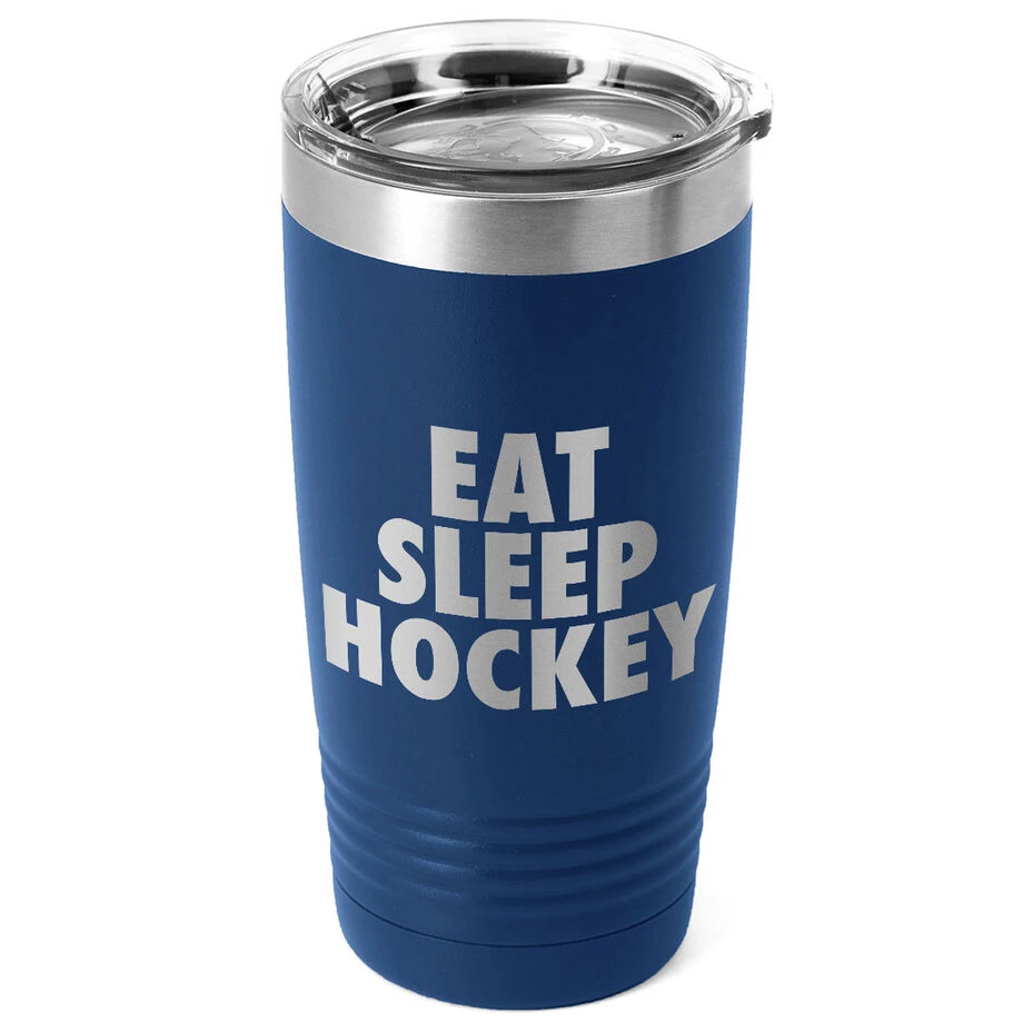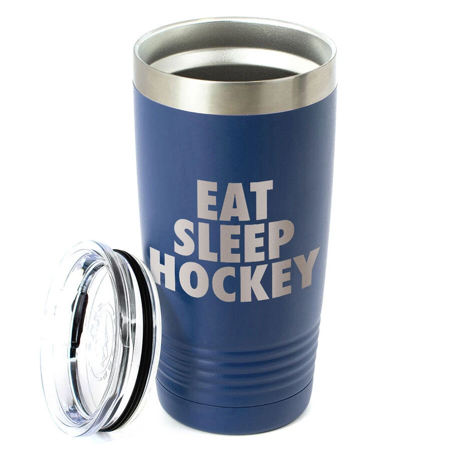 An excellent hockey gift for a player or the team, our stainless steel engraved “Eat. Sleep. Hockey” travel tumbler, is designed for hot and cold drinks. The 20 oz. insulated tumbler is designed to lengthen the time for which hot drinks stay hot and cold drinks stay cold – even when the tumbler is used outdoors, and utilizes a double-wall vacuum insulation, which helps keep the temperature of the beverage inside at, or near, optimal temperatures. Perfect for bringing to the rink, on road trips, or anywhere a player is headed, this is sure to be a go-to travel tumbler that’s also a great player or coach gift for the beginning or end of the hockey season.