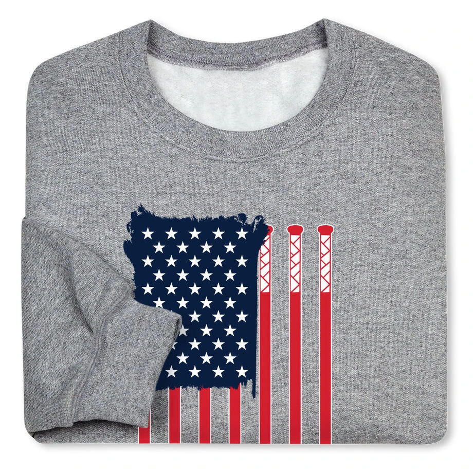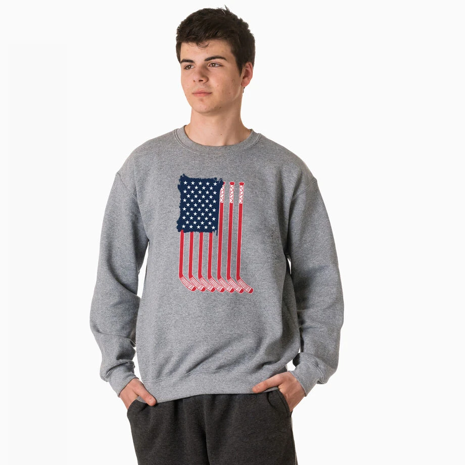 Show off your patriotic pride with one of our exclusive patriotic hockey designs on a crewneck sweatshirt, perfect to wear on those chilly days. Our crewneck sweatshirts are made from a blend of cotton and polyester. These super-soft sweatshirts are also the perfect weight to keep you warm on the cooler days.