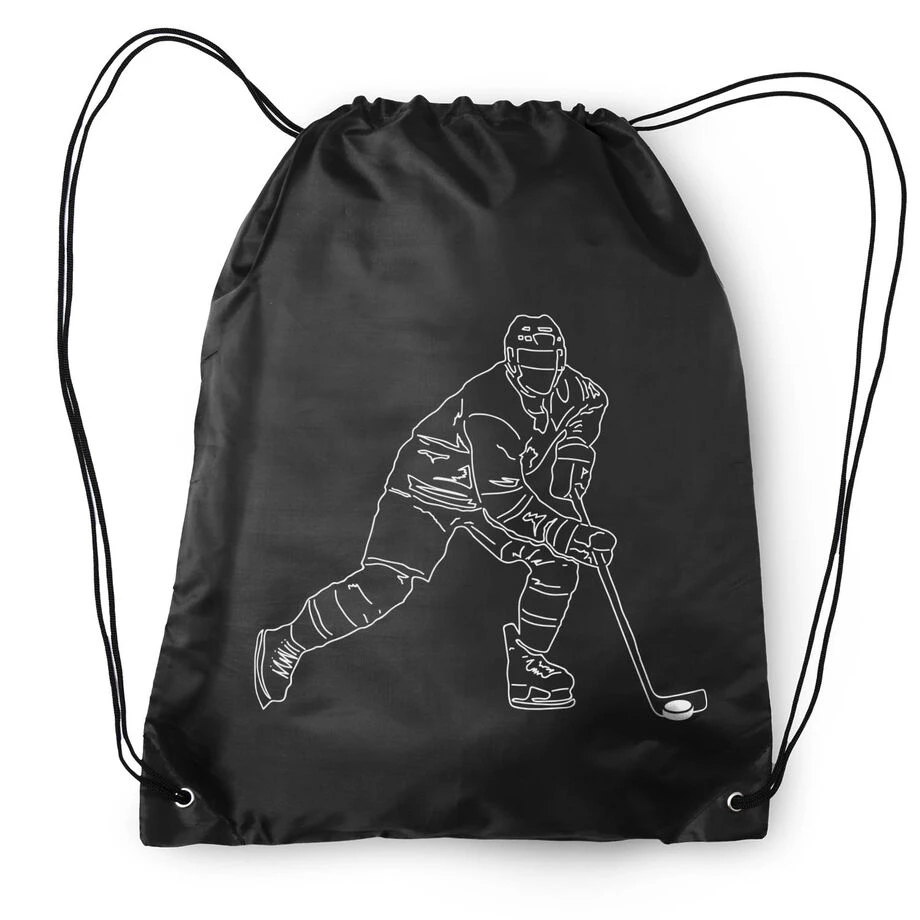 Show off your ice hockey pride on our drawstring backpack with our bold one-of-a-kind sport design, any player would love this as a gift for any occasion. Our 14″ X 18″ tough nylon drawstring backpacks are perfect to carry everyday needs to carrying your sports items to practice, game or meet. With the fun bright colors these bags also make great gifts for that special sports player or even end of the year team gifts.