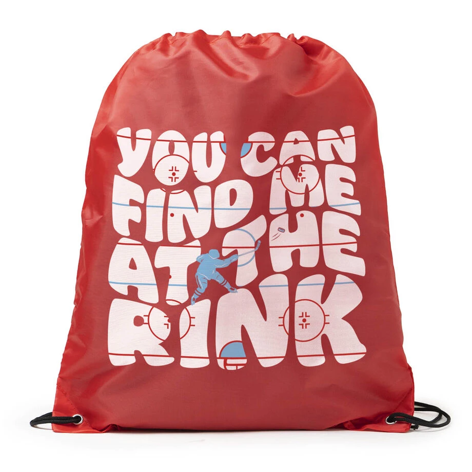 This 14″ x 18″ tough, nylon You Can Find Me at the Rink hockey design drawstring backpack is perfect to carry everyday accessories that you might need for practice or a game. With the fun, bright colors and unique designs, these bags also make perfect gifts for that special hockey player.