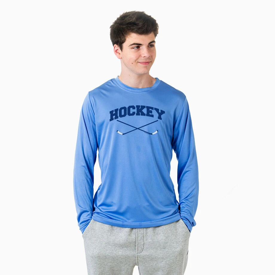 Hockey Long Sleeve Performance Tee – Hockey Crossed Sticks Logo