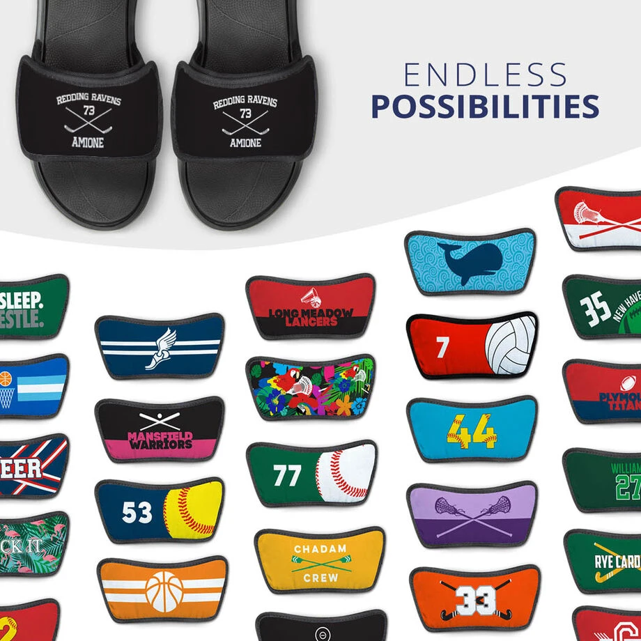 Show off that hockey pride everywhere you go with a pair of hockey Repwell® slide sandals and the interchangeable design straps. With the removable design straps you can mix and match different straps and represent different sports and designs all on one pair of sandals. With the endless possibilities for designs these Repwell® slide sandals and straps make for a great gift not just for a player but for the whole team.