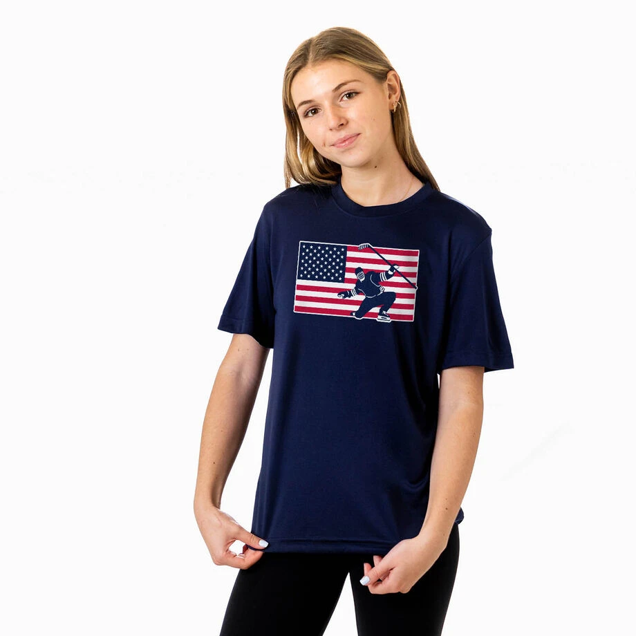 Perfect for 4th of July, our patriotic hockey tech tee reps both your love for the sport and the red, white and blue. Designed to perform, our short sleeve performance tees are made from 100% moisture-wicking polyester interlock to keep athletes cool and dry. With a relaxed and easy fit, they make for a great tee for both on and off the lacrosse field. Personalize these tees by adding your team number to the back. These make for a winning gift idea for any occasion for both players and fans!