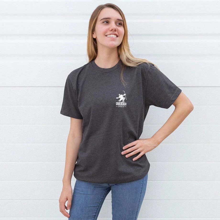 Wear your favorite hockey design on the BACK of your shirt with a smaller design on the front. Show off your hockey pride with this bold and stylized short sleeve hockey t-shirt. It’s a great hockey gift idea for any player who just can’t get enough of that hockey lifestyle. It makes for the perfect end of season gift or any special occasion. Coming in a variety of colors and unique designs these are a great wardrobe collection.
