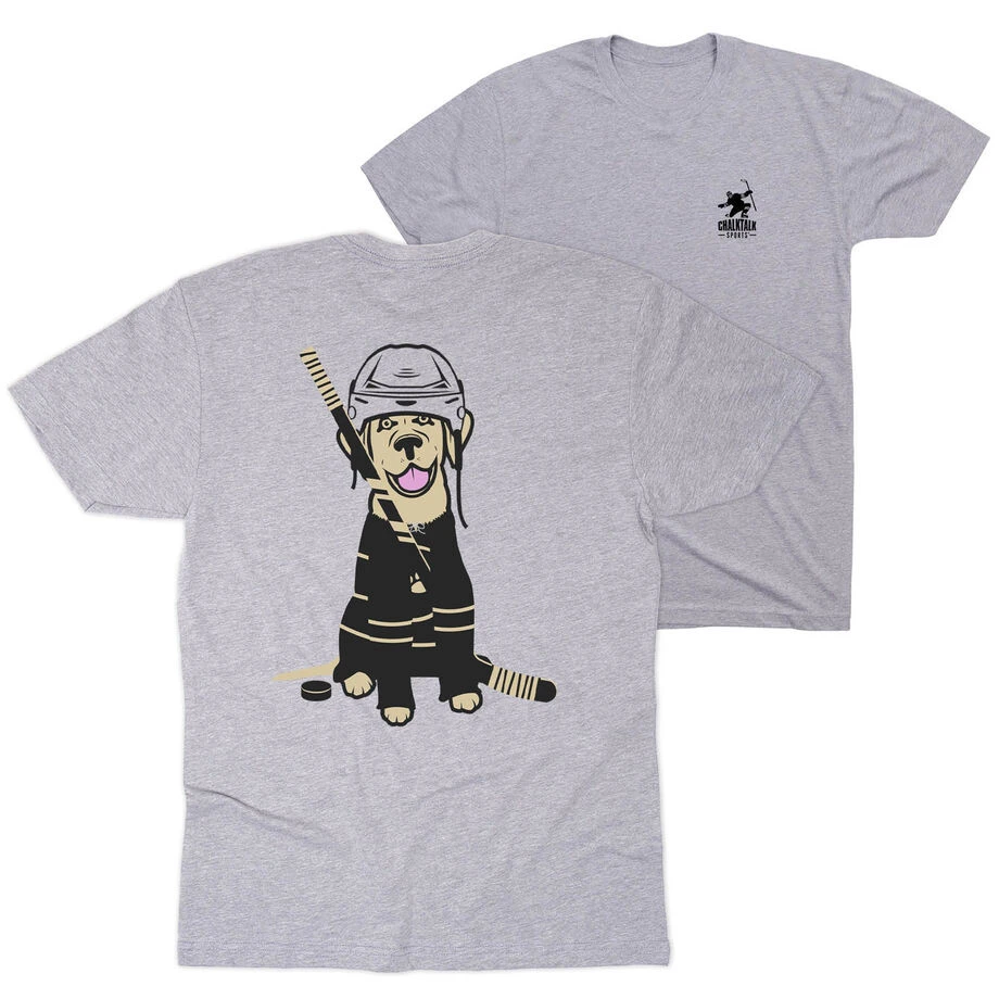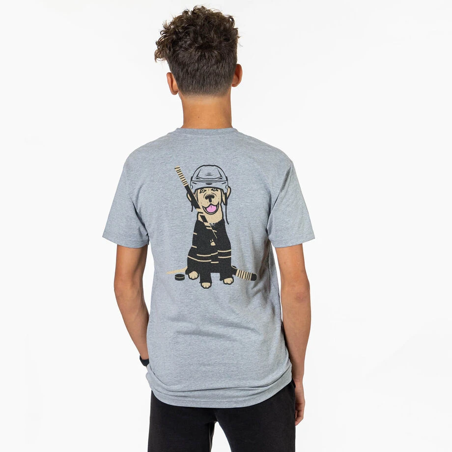 Hockey Short Sleeve T-Shirt – Hunter The Hockey Dog (Back Design)