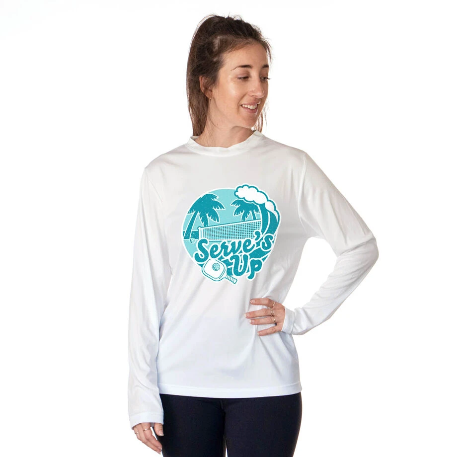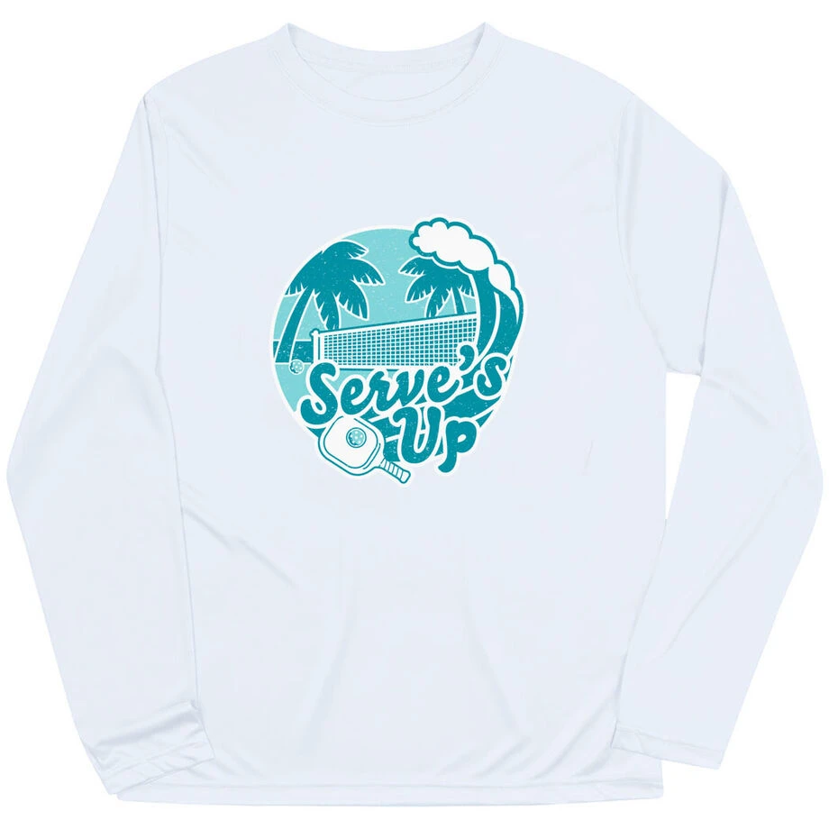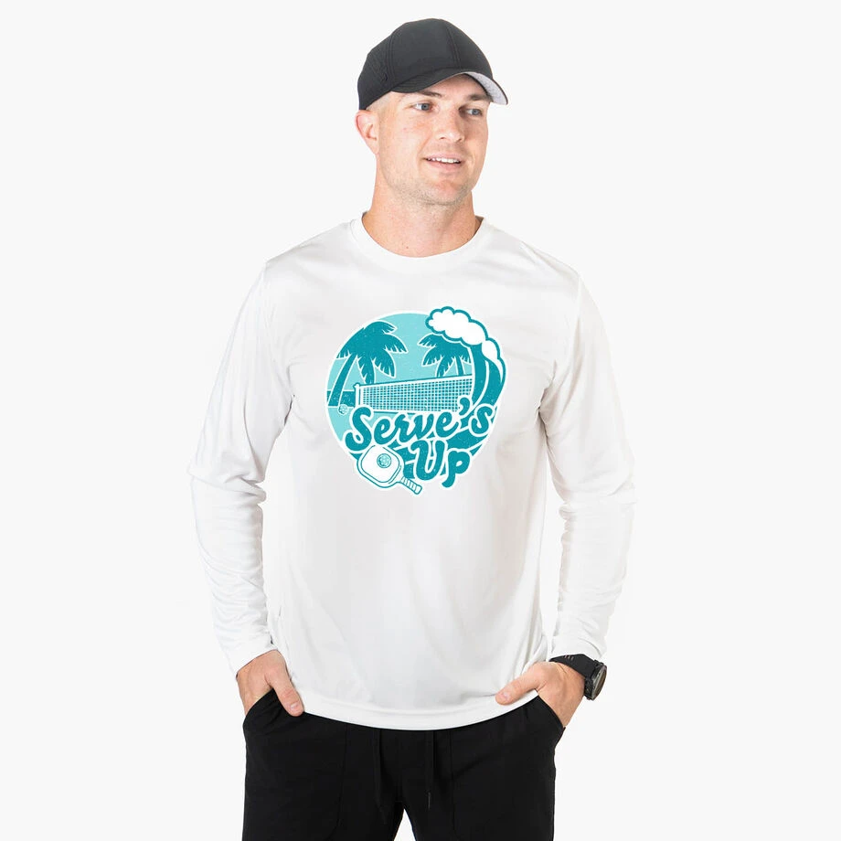 With its pickleball ball cool blue wave design and dedicated pickleball motto, this long sleeve athletic tee will be a hit whenever you wear it. This long sleeve performance tee is made from 100% moisture-wicking polyester interlock to keep athletes cool and dry. With a relaxed and easy fit, this tech tee is UV protected and a great way to keep you comfortable while being able to show off your love for your favorite sport. Choose from one of our many shirt colors so you can show off on any court! This pickleball shirt is the athletic long sleeve you will want to add to your wardrobe, and also makes for a perfect gift idea for any occasion.