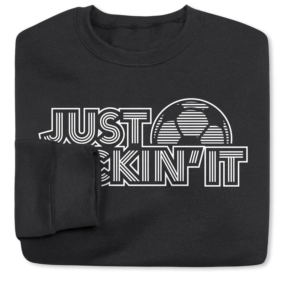 Soccer is where it’s at, so is this Just Kickin’ It design. Not only is it stylish and fun, our crewneck sweatshirts are made from a blend of cotton and polyester. These super-soft sweatshirts are also the perfect weight to keep you warm on the cooler days. Any player or fan would love this as a gift for any occasion.