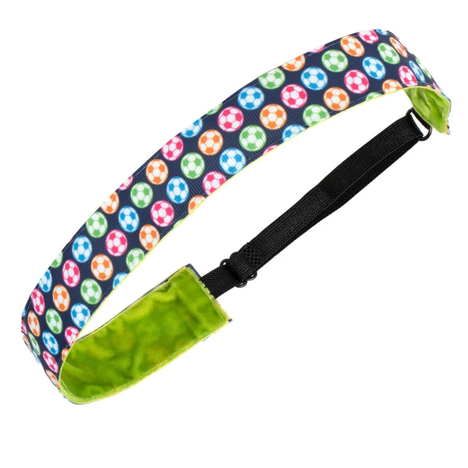 Our athletic headband features a unique soccer design. The comfortable Juliband headband is backed with a non-slip velvet to ensure your hair stays put through any activity. This headband is fully adjustable for the best custom fit. Our stylish and unique headband is perfect for any practice, game, or even everyday wear. This headband is an ideal accessory for every soccer player, or any other sport enthusiast.